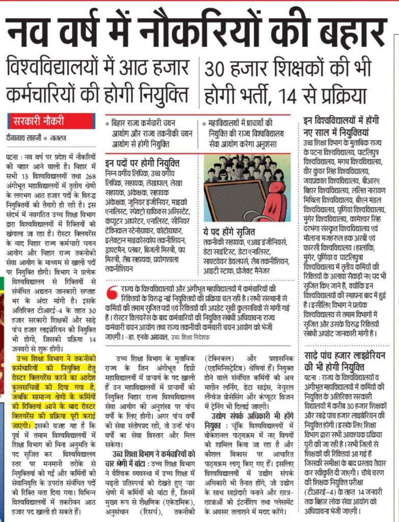 Big Hiring Drive in Bihar Universities : नव वर्ष में नौकरियों की बहार, बिहार के विश्वविद्यालयों में 38 हजार से अधिक पदों पर होगी नियुक्ति