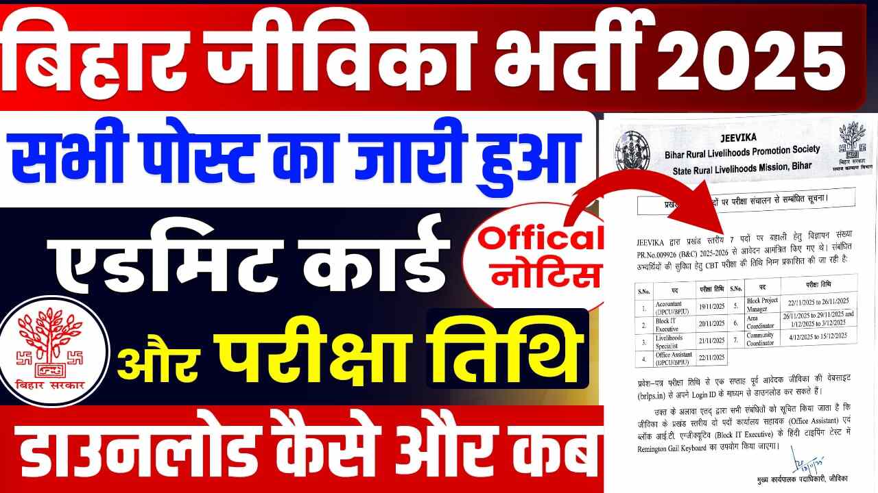 Bihar JEEViKA Admit Card 2025: बिहार जीविका भर्ती परीक्षा 2025 की तिथि घोषित, एडमिट कार्ड जारी, यहां से करें डाउनलोड