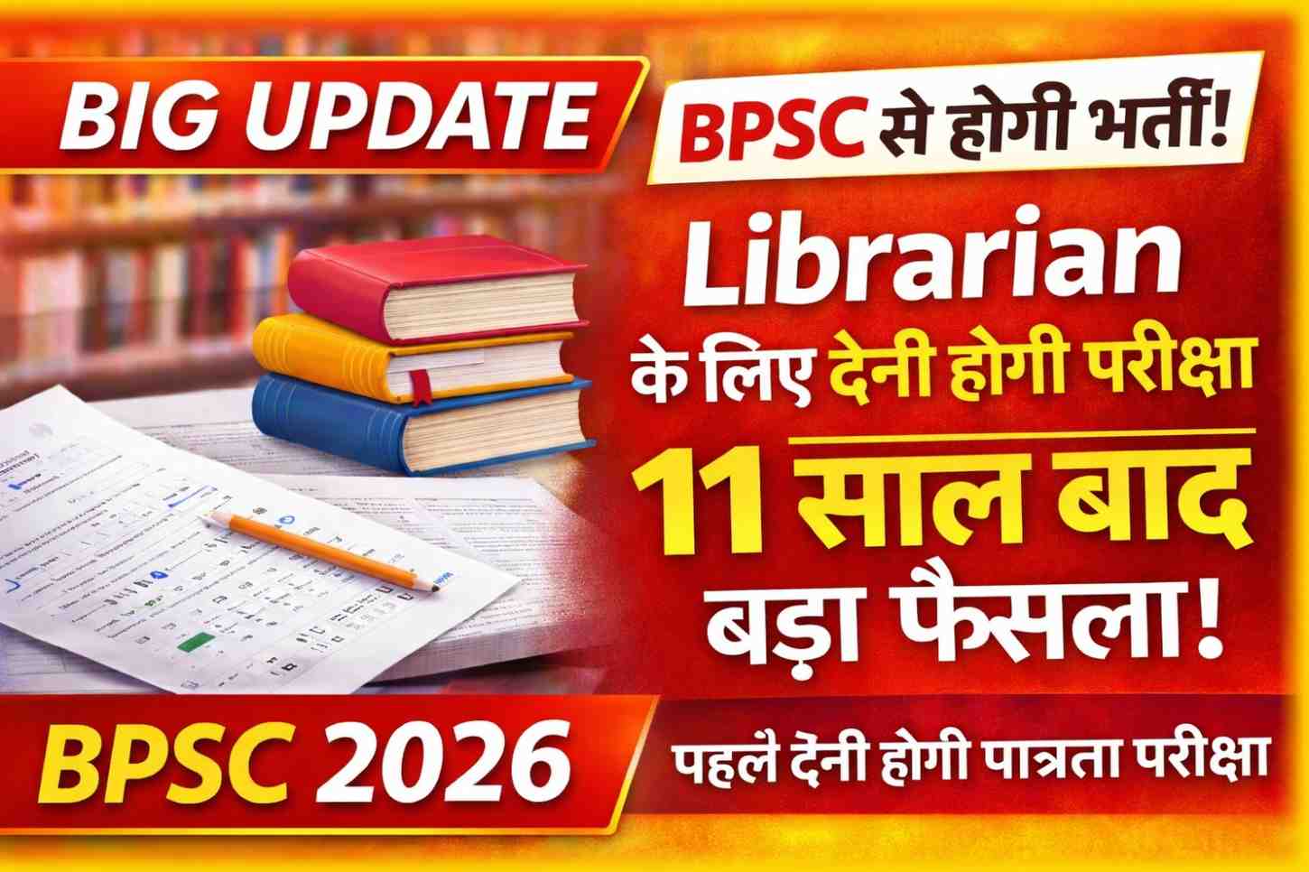 BPSC Librarian Recruitment 2026: बिहार के युवाओं के लिए एक बड़ी खुशखबरी सामने आई है। राज्य के उच्च माध्यमिक विद्यालयों में लंबे समय से लंबित लाइब्रेरियन नियुक्ति प्रक्रिया अब नए ढंग से शुरू होने जा रही है। जानकारी के अनुसार, अब लाइब्रेरियन की भर्ती बिहार लोक सेवा आयोग (BPSC) के माध्यम से की जाएगी और इसके लिए अभ्यर्थियों को पहले पात्रता परीक्षा उत्तीर्ण करनी होगी।
