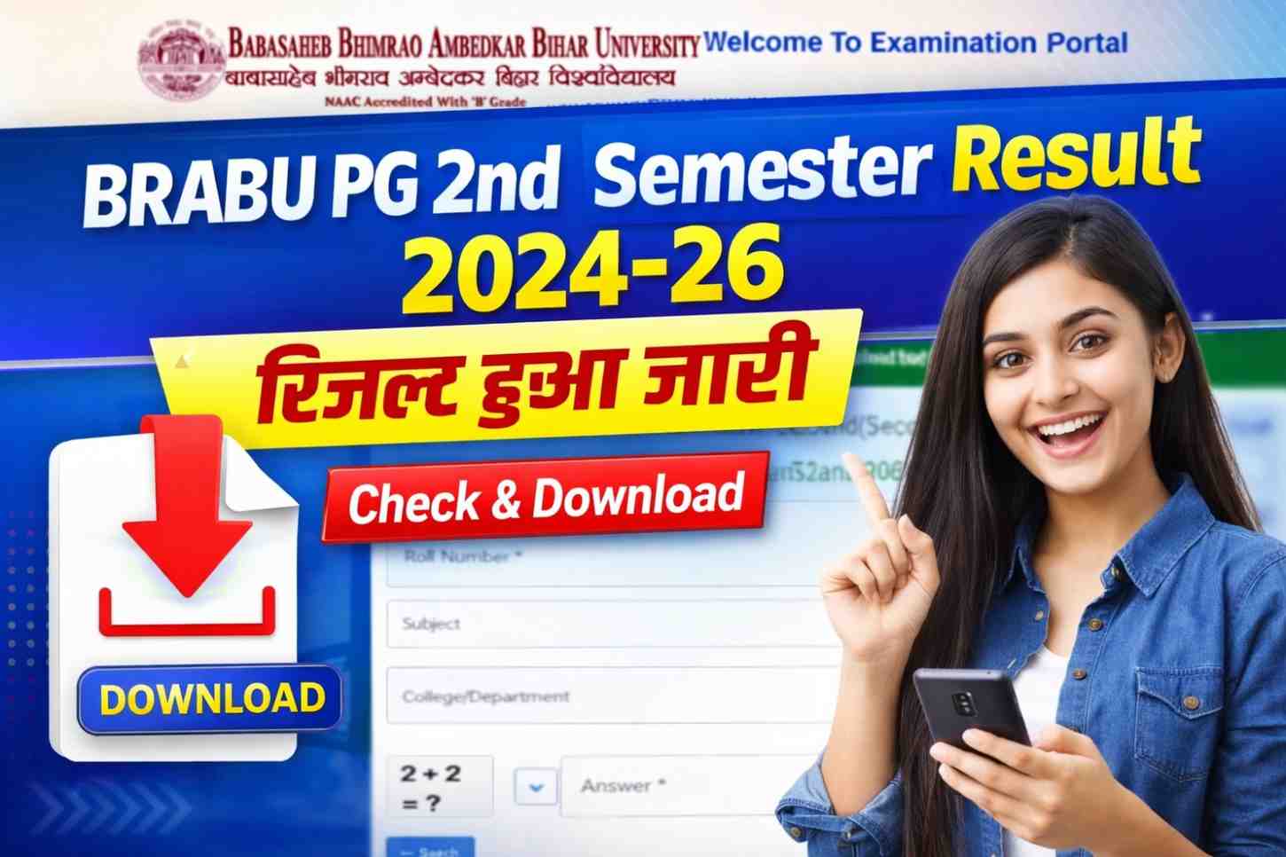 BRABU PG 2nd Semester Result 2024–26 : बाबासाहेब भीमराव अंबेडकर बिहार विश्वविद्यालय (BRABU), मुजफ्फरपुर ने पीजी सत्र 2024–26 के छात्रों के लिए बड़ी अपडेट जारी कर दी है। विश्वविद्यालय द्वारा M.A, M.Sc और M.Com द्वितीय सेमेस्टर परीक्षा 2024 का रिजल्ट आधिकारिक रूप से जारी कर दिया गया है। जिन छात्र–छात्राओं ने यह परीक्षा दी थी, वे अब अपना परिणाम ऑनलाइन माध्यम से डाउनलोड कर सकते हैं।