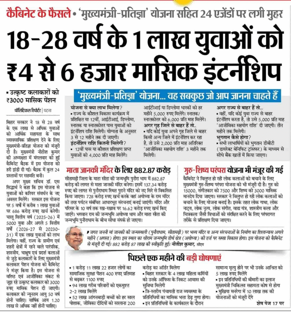 Bihar Pratigya Yojana 2025 – पात्रता और इंटर्नशिप विवरण